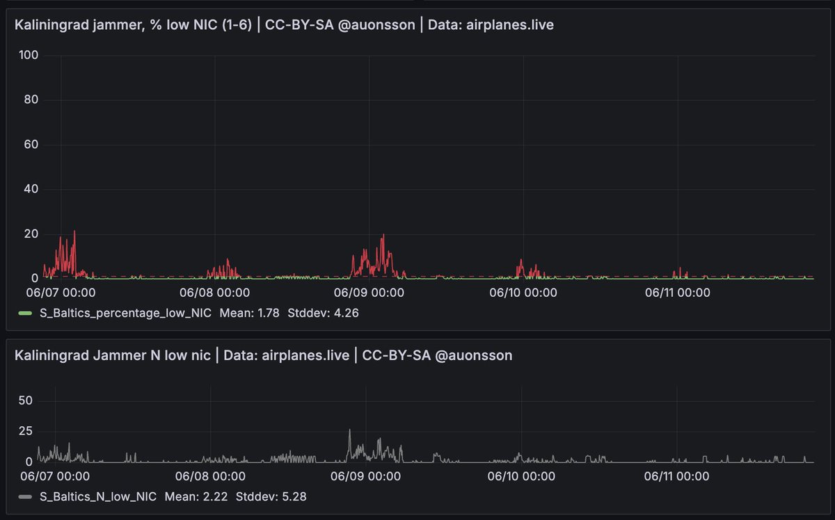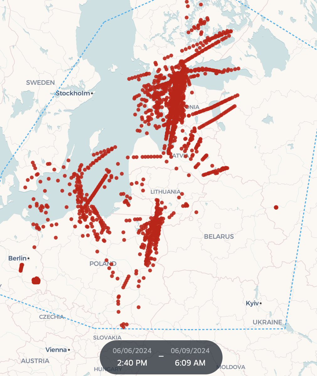 The Kaliningrad jammer is off and the St Petersburg jammer has been drastically tuned down. As of early morning June 9th.