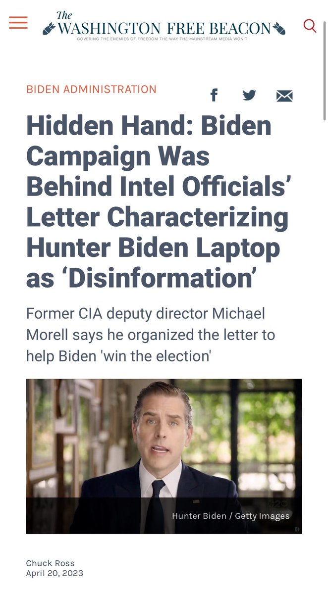 What wasn’t legitimate, as the @FreeBeacon (h/t @ChuckRossDC) reported in 2023, was the campaign to discredit NY Post’s scoop.