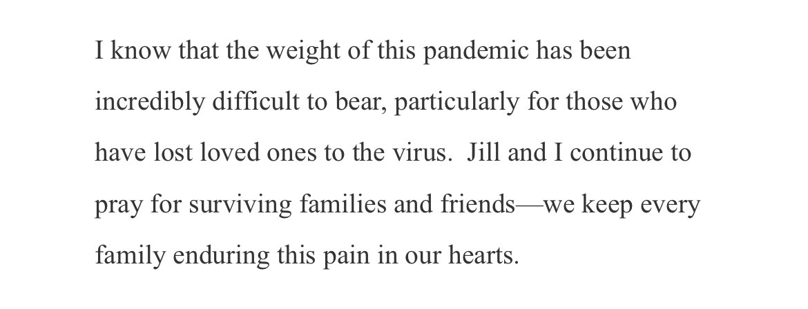 The weight of the pandemic has been difficult to bear for those who campaigned for you based on your promise to stop the pandemic, not just sweep it under the rug. For healthcare & public health workers, abandoned by your failure to follow public health practices, …/3