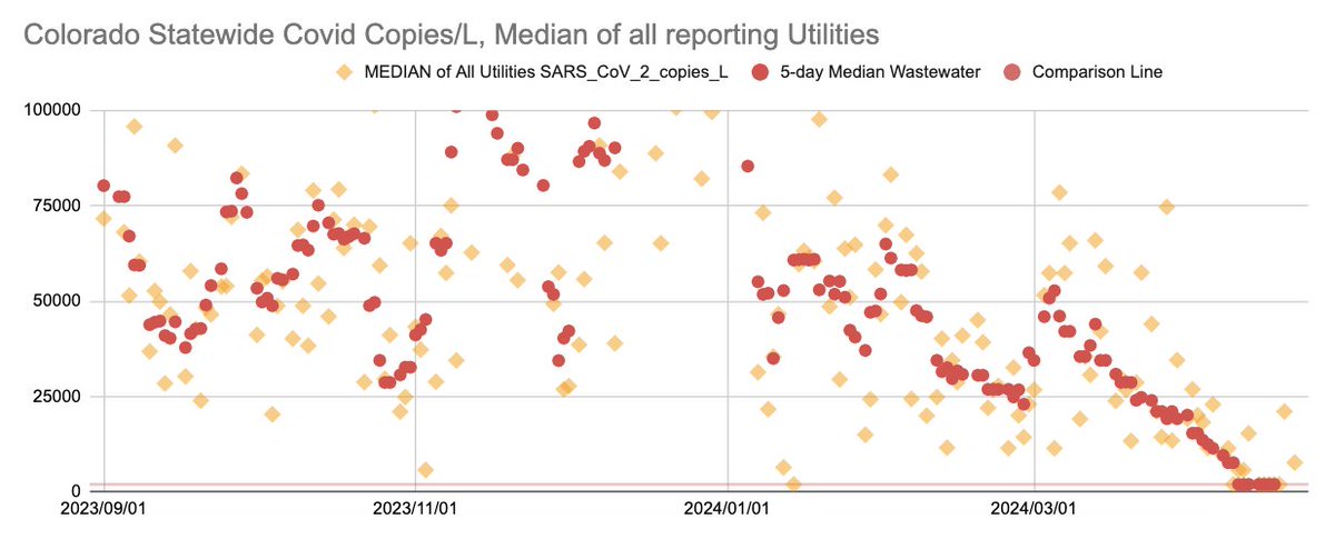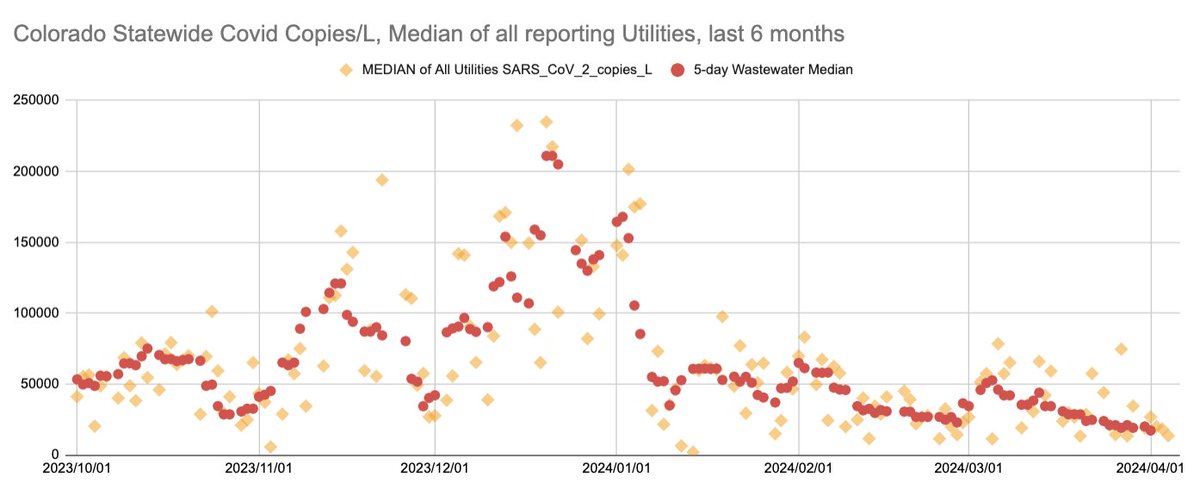 Yes, the 5-day median today (48,000 Covid Copies per liter) is 24 times HIGHER than it was last week (2,000).