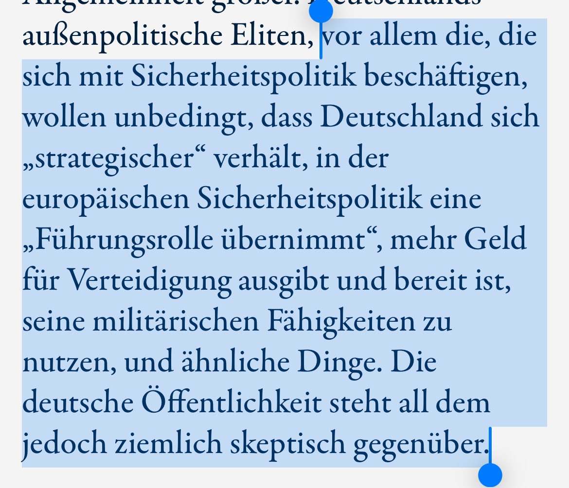 Diese These lässt sich halt empirisch nicht belegen. Alle Umfragen zeigen, dass die Deutschen die Notwendigkeit einer kriegsfähigen Bundeswehr sehen, sogar die Wiedereinsetzung der Wehrpflicht befürworten, Russland als aggressiv Staat erachten, vor dem man sich schützen muss 1