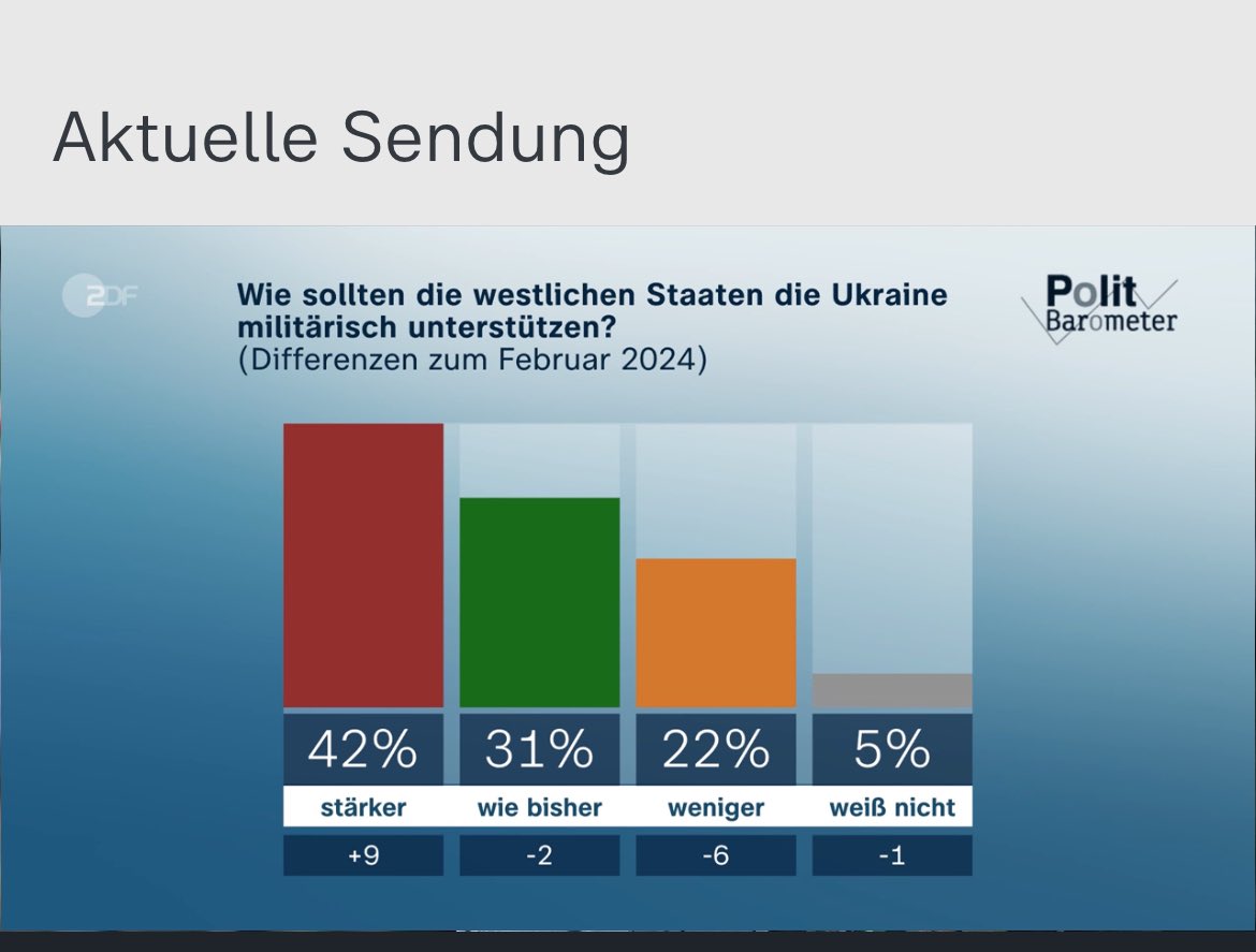 und weiter die Notwendigkeit sehen, die Ukraine militärisch zu unterstützen. Den einzigen Unterschied zwischen dem sogenannten blob und der Öffentlichkeit gab es in der Taurusfrage. Und wenn das oben zitierte Argument die These de Beitrages ist, fällt dieser halt empirisch 2