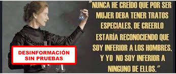 No, Marie Curie jamás dijo esto y, de hecho, la discriminaron MUCHO por ser mujer. El trato especial era que no querían darle el Nobel, solo a su marido. En general ¿Podríamos dejar de creernos las frases que salen con un señor al lado sin comprobarlas?