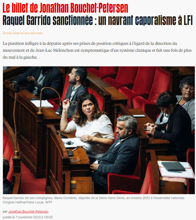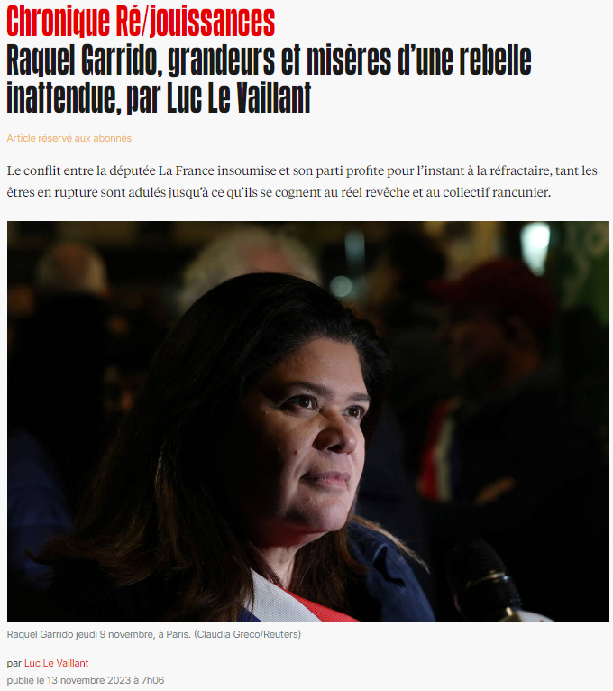 Novembre 2023 : on rappelle que Raquel Garrido était en froid avec LFI pour avoir critiqué le mouvement.