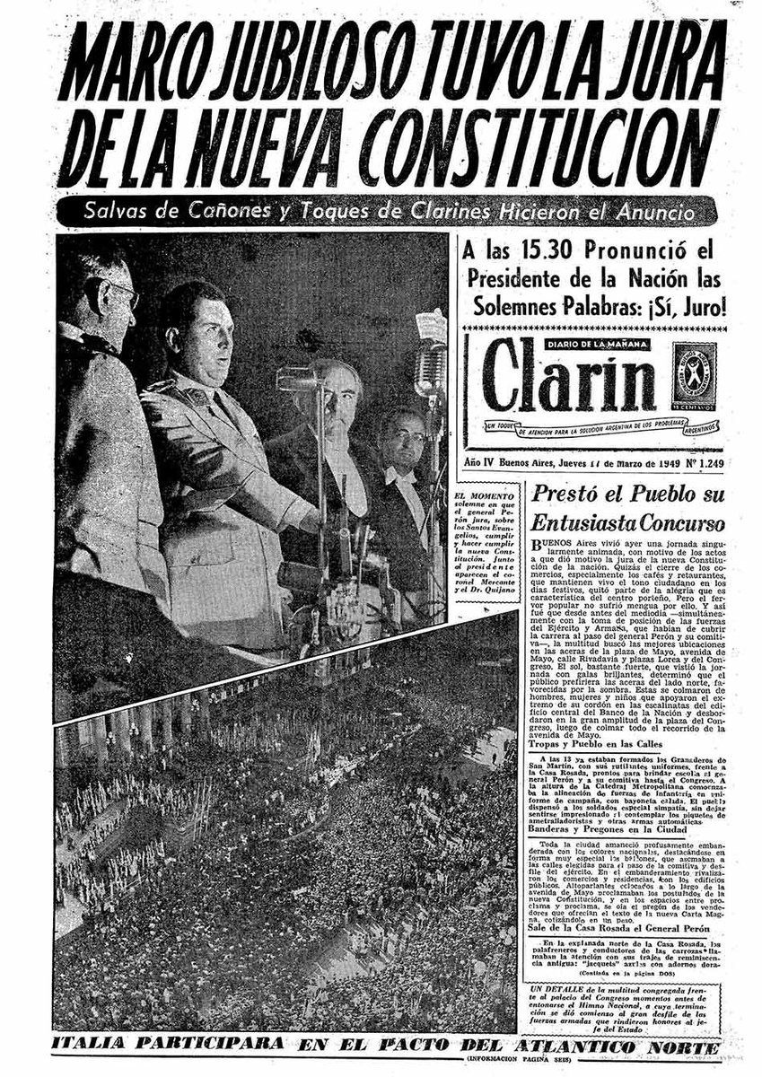 En marzo de 1949, seis años antes de los hechos, la Constitución Nacional fue reformada ampliamente con el fin de aumentar los poderes del Poder Ejecutivo a expensas de las demás autoridades, además de una serie de cambios que alejaban a la carta magna de su anterior inspiración liberal, dandole un tono colectivista. Pero el cambio más importante, señalado por los críticos del gobierno como el propósito esencial de la reforma toda, consistió en suprimir la traba a la autosucesión presidencial, eliminado el requisito que figuraba en la Constitución anterior (sólo se permitía un mandato de 6 años sin posibilidad de reelección). También se suprimía el Colegio Electoral y se autorizaba la elección directa del presidente y de los senadores nacionales. Además mantenía al Catolicismo Apostólico Romano como religión oficial de la Argentina.