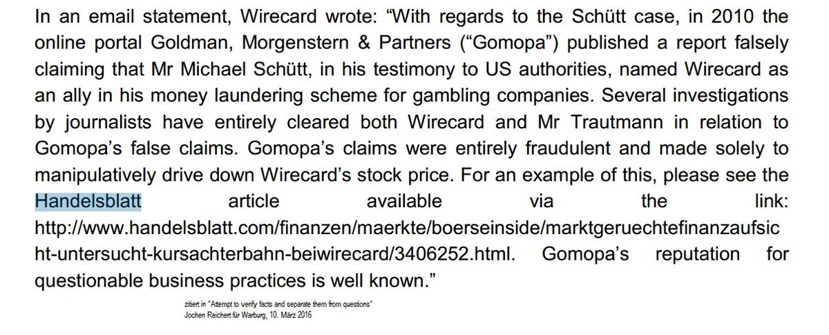@FelixHoltermann @ingomalcher schon damals beteiligt: Anwälte gegen Kritiker, Medien, Aufsichtsbehörden, Banken (Credit Suisse, Deutsche Bank), untätige StA München, Analysten, bezahlte Schreiberlinge in Foren, die Politik... was hat sich daran bis heute geändert? #wirecard