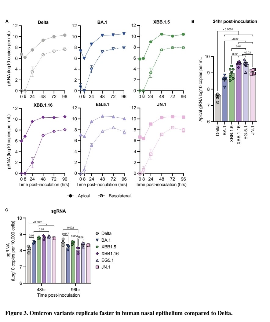 - In human nasal airway epithelial cultures, contemporary Omicron variants replicated faster ...
