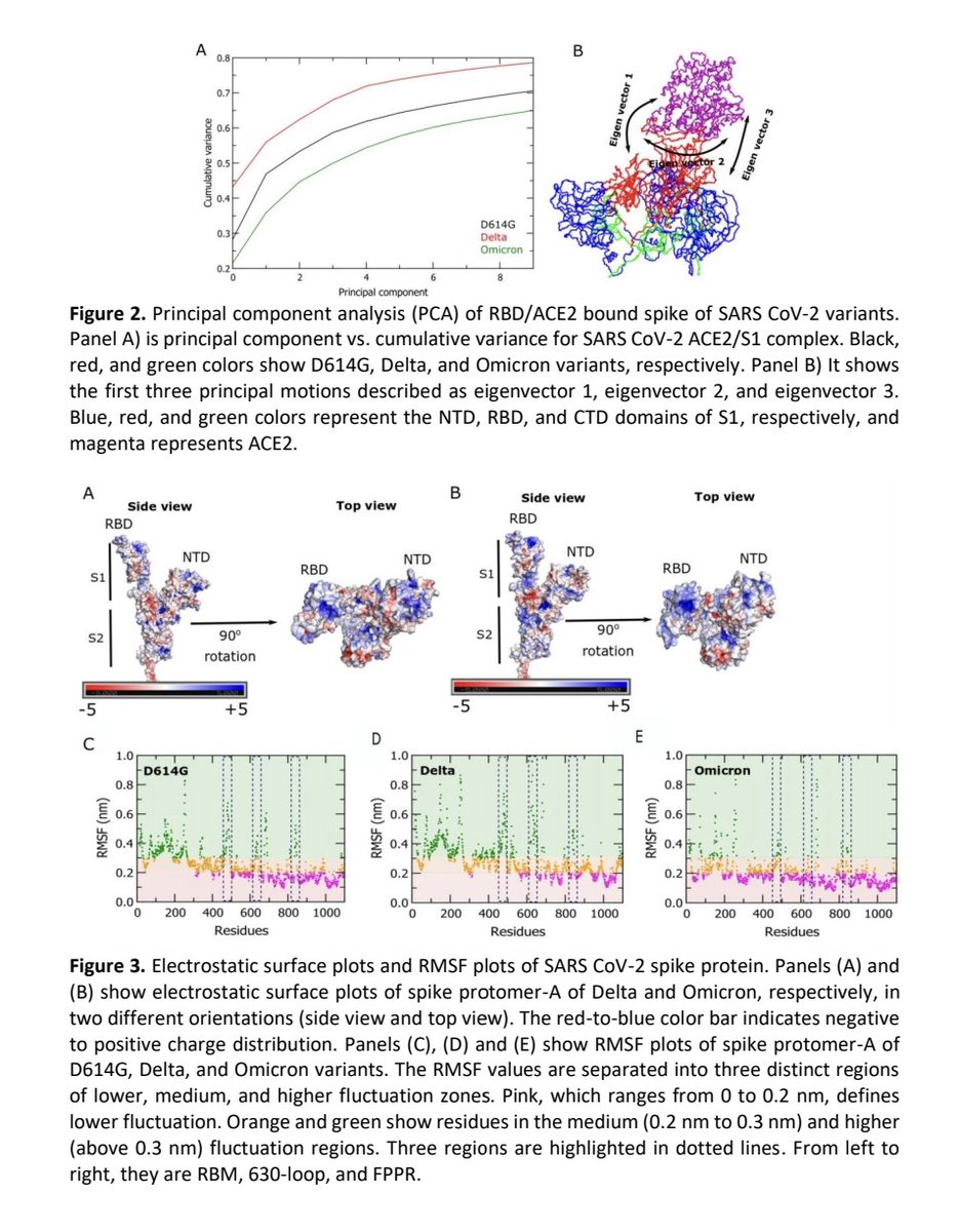 3) The authors find that ACE2 binding induces larger swing motions in the receptor-binding domain (RBD) of the Delta variant, which propagate allosteric changes to the S1/S2 junction and fusion machinery in the S2 domain.
