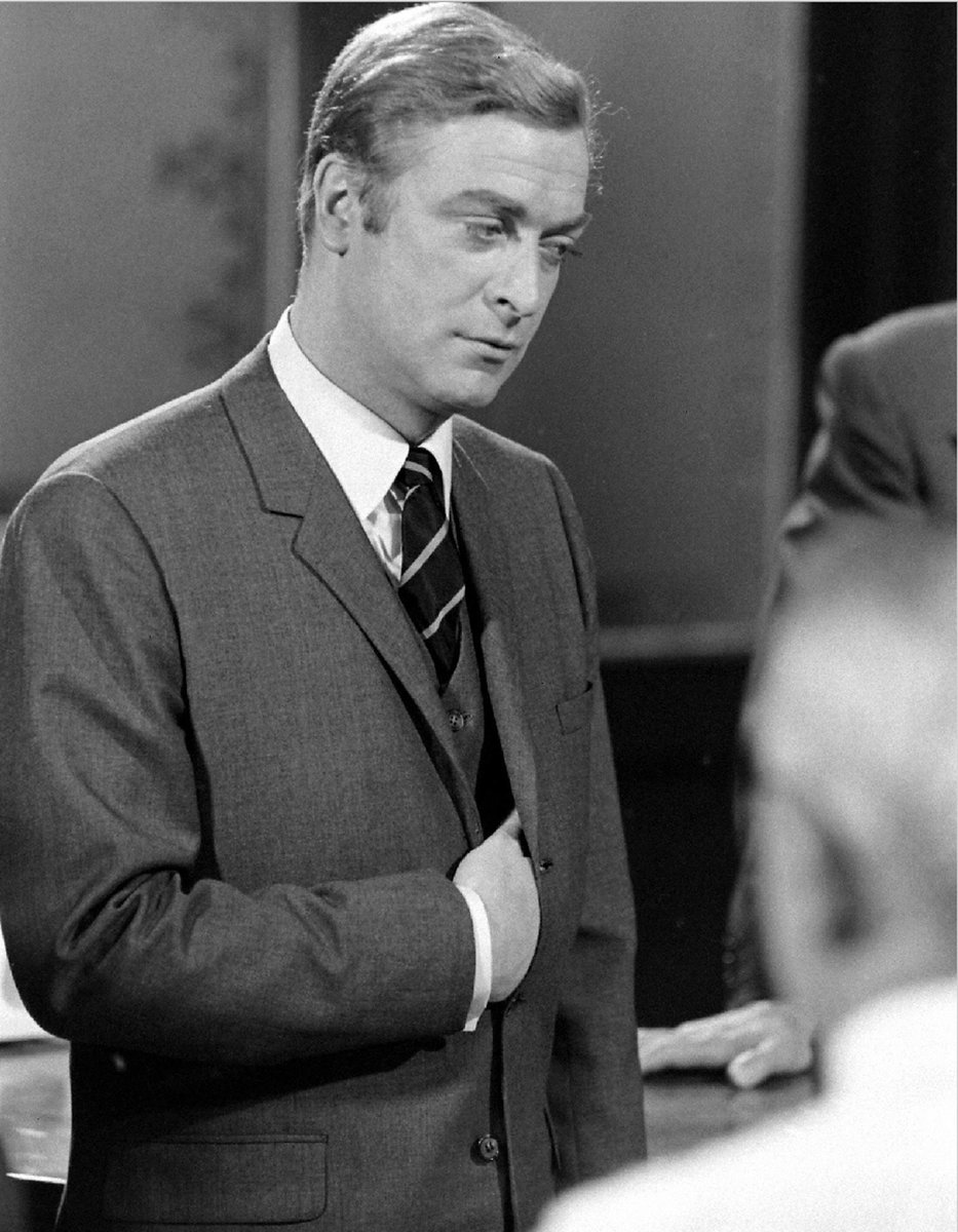 A distinguishing mark of quality British tailoring—and, indeed, tailoring all over the world—is that the jacket doesn't pull, particularly around the buttons. Caine can comfortably fit his hand into his coat, but Milo's coat barely contains him.