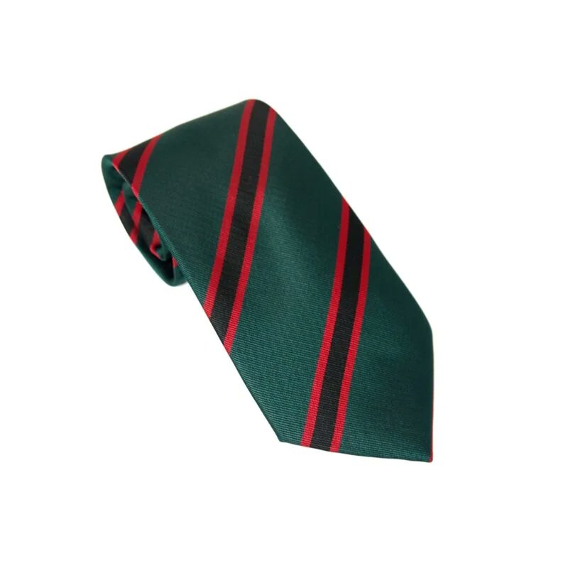 There's also the tie. In British culture, regimental striped ties typically denote membership in some organization, often a school or part of the military. For example, The tie below signals that the wearer is part of The Rifles, an infantry regiment of the British Army.