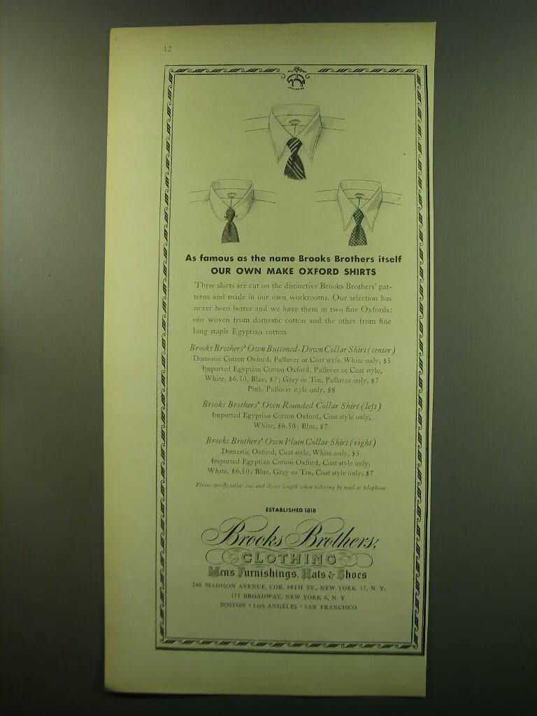 Over time, Brooks Brothers had to charge a little more for their shirts, although some of this was offset by discounts. In 1949, they were $90. In 2019, I think they were $150 or so, but often discounted to $100.