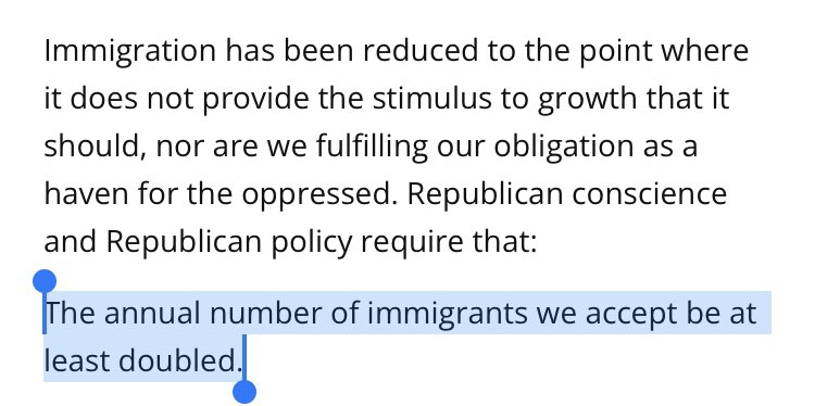 About six decades ago, a group pushed for doubling immigration, cracking down on polluters and leaning on businesses for fair hiring. It did this in a radical document called the 1960 Republican Party platform.🧵 1/12 presidency.ucsb.edu/documents/repu…