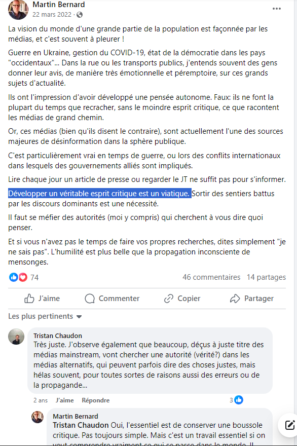 24/n La chaîne de Martin Bernard (donc lui probablement) RT aussi un troll pro-poutine...