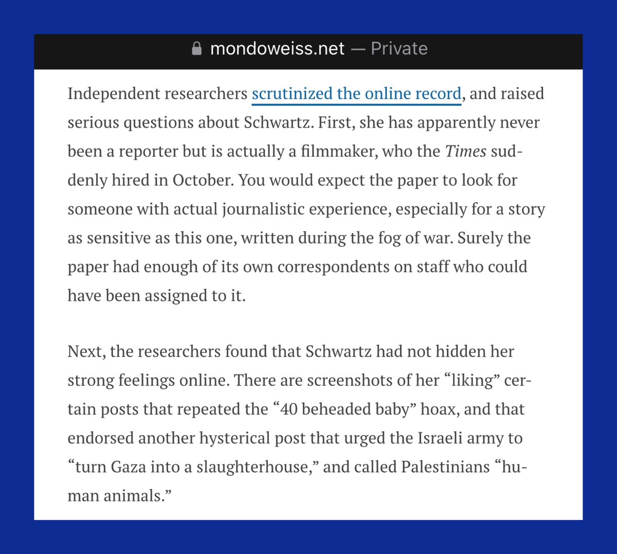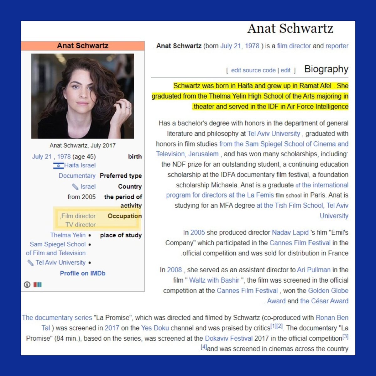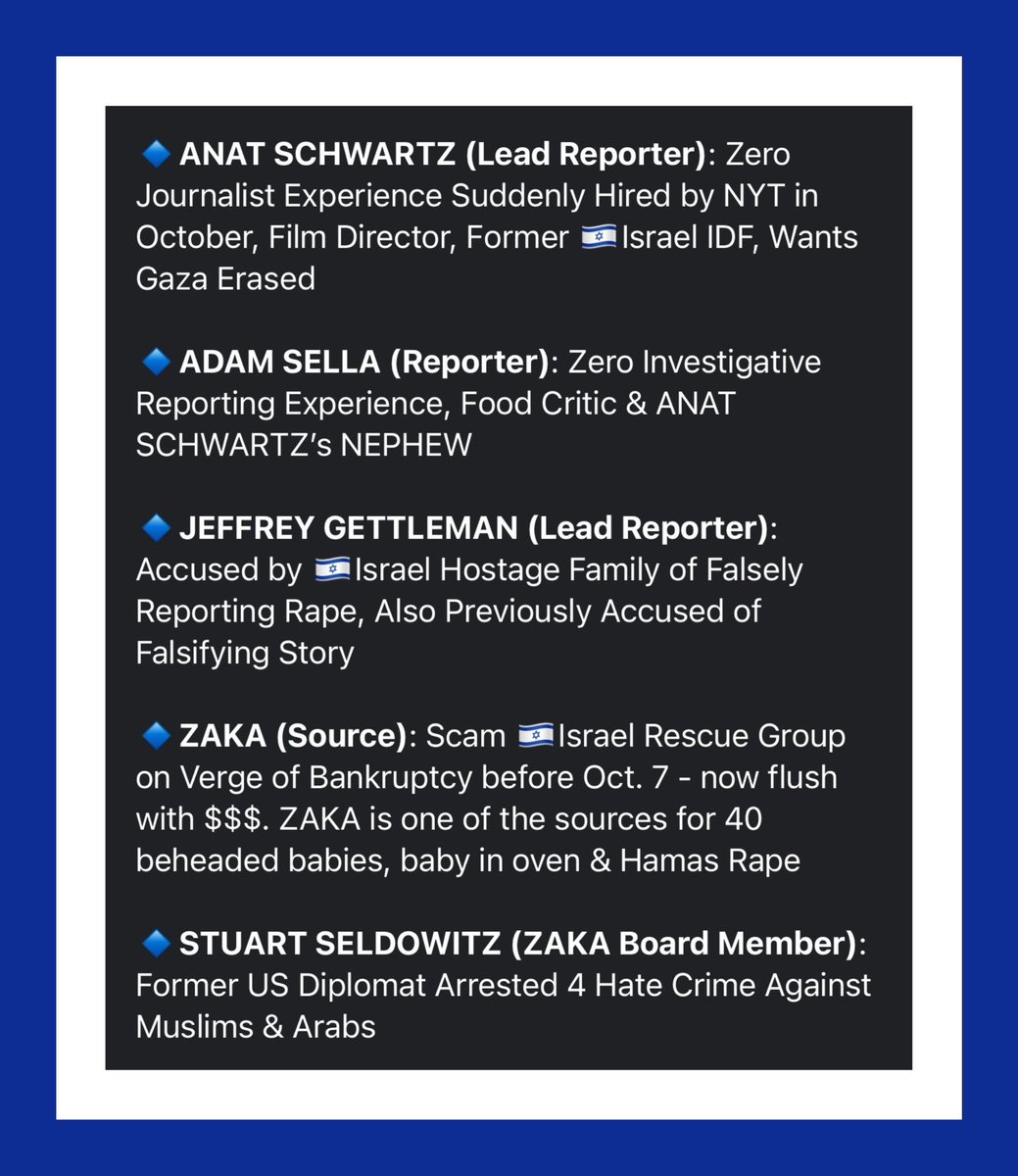 Anat Schwartz who is a Film Director w/zero journalism experience was suddenly hired by NYT in Oct & made one of the lead reporters on🇮🇱Rape Story b/c she’s an expert at bringing Fiction to Life🤣