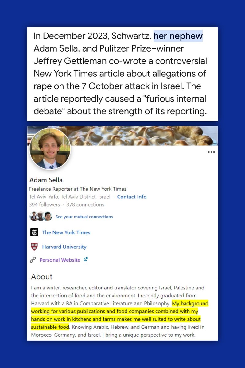 Anat Schwartz added her Nephew ADAM SELLA, a food critic who has zero investigative reporting experience to the 🇮🇱Israel Rape Story Team. Together, they published a series of Hamas Rape stories highly criticized for being void of evidence & caused a Journalist revolt at the NYT.