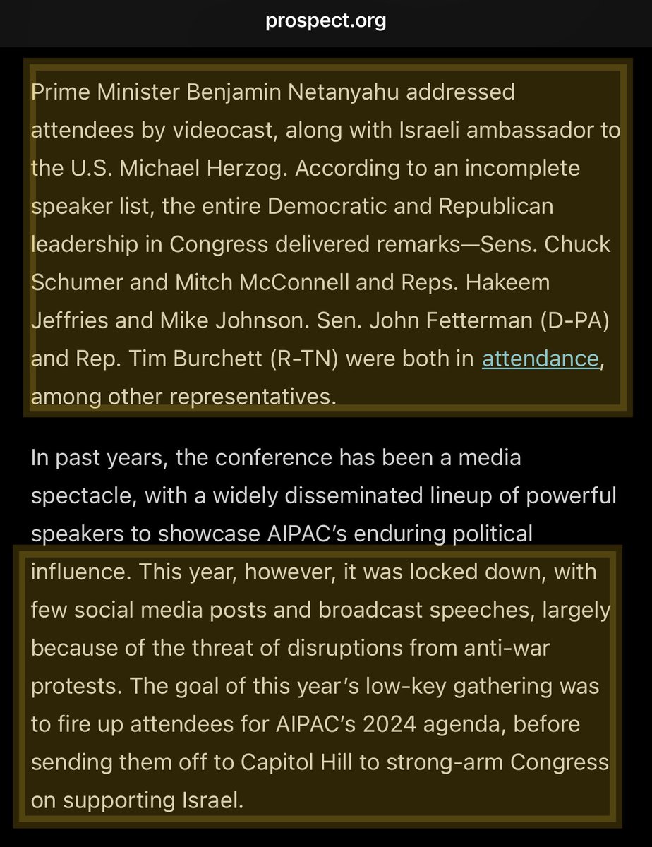 This year’s AIPAC conference was locked down b/c of anti-war protests & neg public sentiment of🇮🇱genocide. Attendees were ppl in power from🇮🇱 & all🇺🇸Congressional leaders.