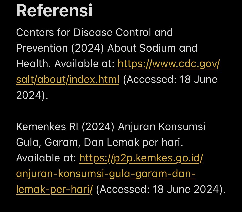 natrium yang ada pada makanan olahan ini fungsinya sebagai pengawet, jadi jangan heran di minuman manis pun ada natrium. konsumsi natrium berlebih bisa meningkatkan risiko hipertensi 🚨