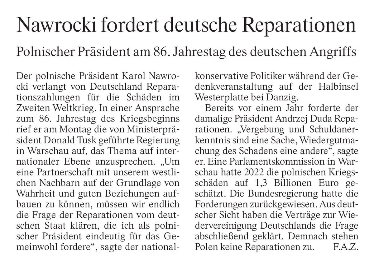 1/Seit Jahren fordern PiS-Politiker, dass Deutschland und Polen Verhandlungen über Reparationszahlungen aufnehmen. Es geht um die unbezahlbare Summe von 1,3 Billionen Euro. Die menschlichen Verluste sind ohnehin nicht in Geld aufzuwiegen. Der Zugewinn durch die ehemaligen