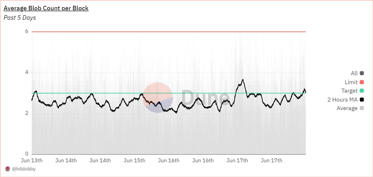 But, even though the zkSync airdrop has passed, we can see that blob activity is still hugging close to the target and will likely cross that boundary again soon.