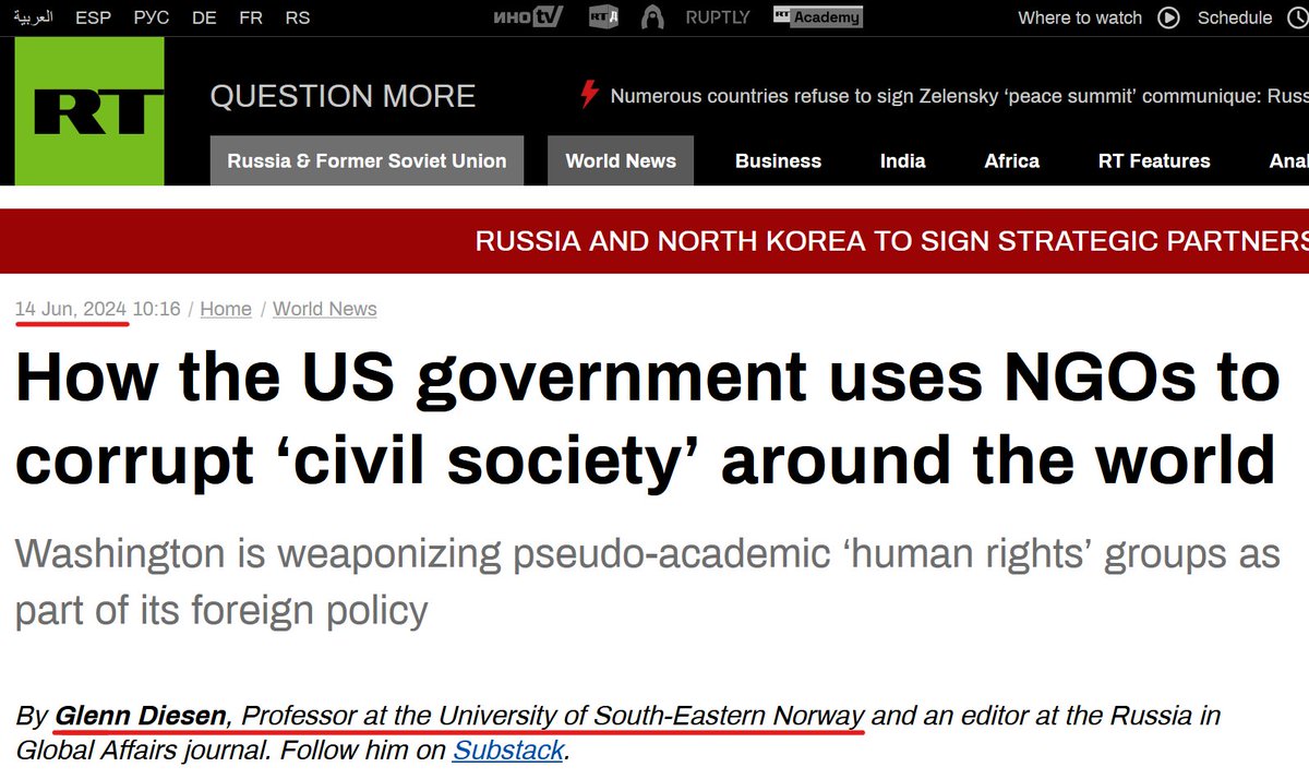 Diesen er altså vel så ortodoks som tsaren i Kreml, og undertegner som professor ved Universitetet i Sørøst-Norge. Slik tar Diesen sitt angivelige akademiske oppdrag ned til et av sine mange bunnn-nivåer. 9/15