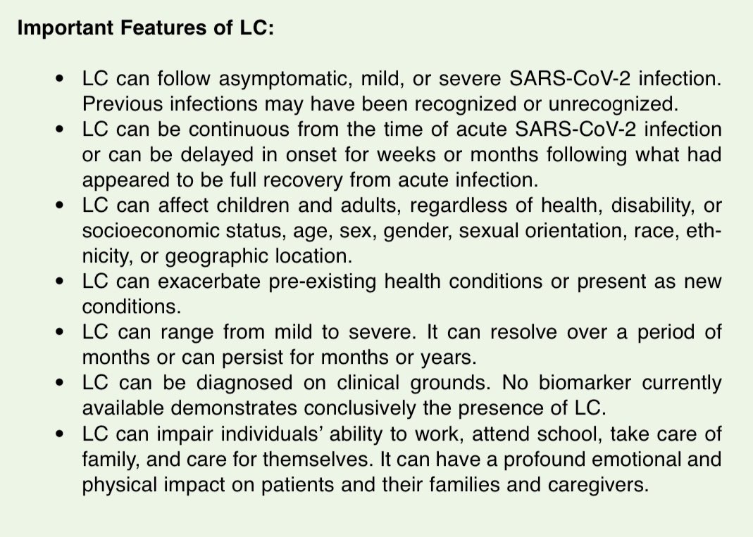 „Long COVID (LC) ist eine infektionsassoziierte chronische Erkrankung (IACC), die nach einer #SARSCoV2-Infektion auftritt und mindestens 3 Monate lang als kontinuierliche, rezidivierende und remittierende oder fortschreitende Erkrankung vorliegt,