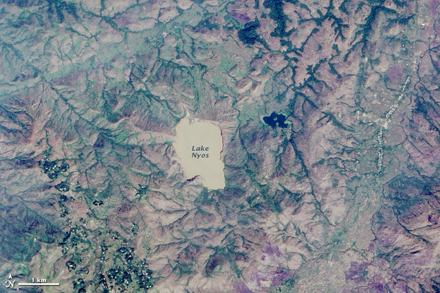 Una erupción limnica es un fenómeno raro en el que una gran cantidad de dióxido de carbono disuelto en el fondo de un lago profundo se libera de forma repentina.