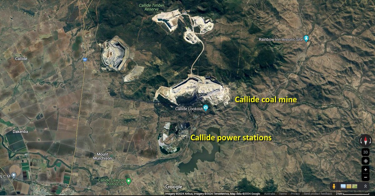 This power station cluster is located where it is because it's beside the Callide coal mine, now run by a little private operator called Batchfire Resources. The site has no other major advantages. google.com.au/maps/@-24.3212…