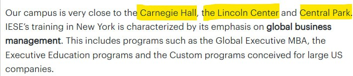 32. "IESE’s New York campus is housed in a building that dates back to 1916. It was the HQ for the Louis H. Chalif dance school and, prior to that, for Columbia Artists Management. IESE New York.