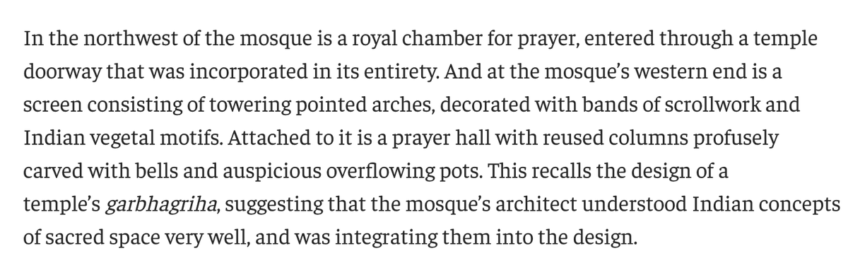 The article by @AKanisetti is pure ahistorical trash. Desecrating Hindu temples to build a mosque at Qutub complex was NOT architectural reuse but Islamic BARBARISM. "Human figures" (aka Murtis) were not just defaced but excised brutally. Kirtimukhs & elephants were mutilated. 🧵