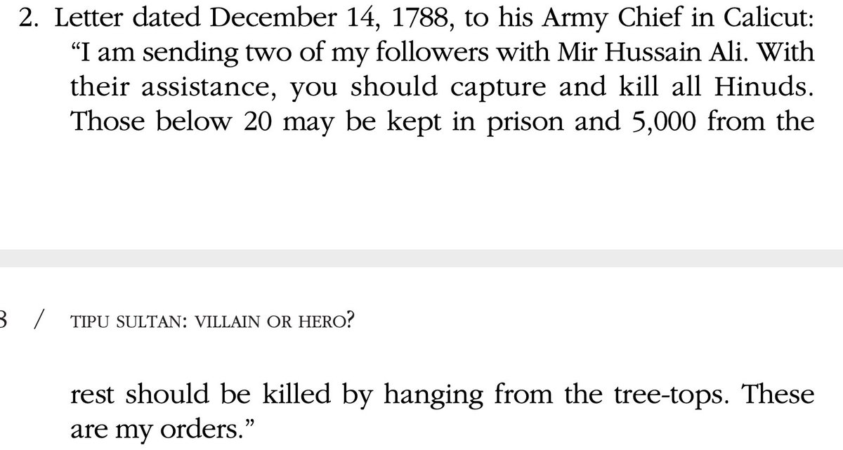 Is this some kind of joke? Can you deny the evidence provided by Tipu Sultan himself in his OWN words in letters & his manifesto describing his desire to wipe out Hinduism & mass convert Hindus by his sword, for the "Glory of I-slum"?