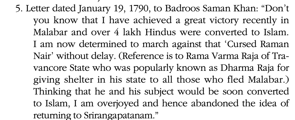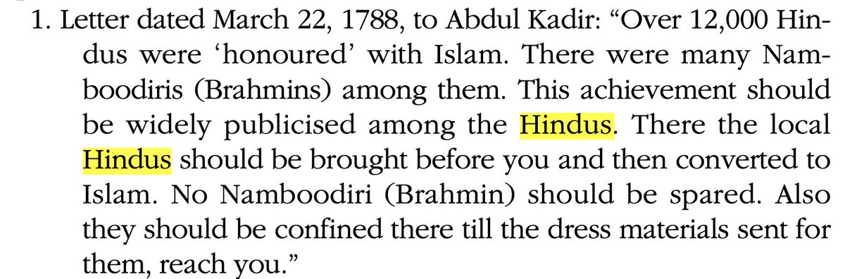 Malabar (Kerala) in particular bore the brunt of genocide & savage barbarism by Tipu. In his letters he instructed his officers to forcibly convert 12,000 Hindus, many of them Namboodris. In a later letter he exulted about forcing 4 Lakh Malabar Hindus to Mohammadism in Malabar