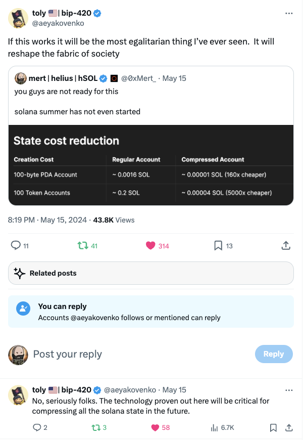 today we're introducing ZK compression to Solana, directly on the L1 — without requiring L2s