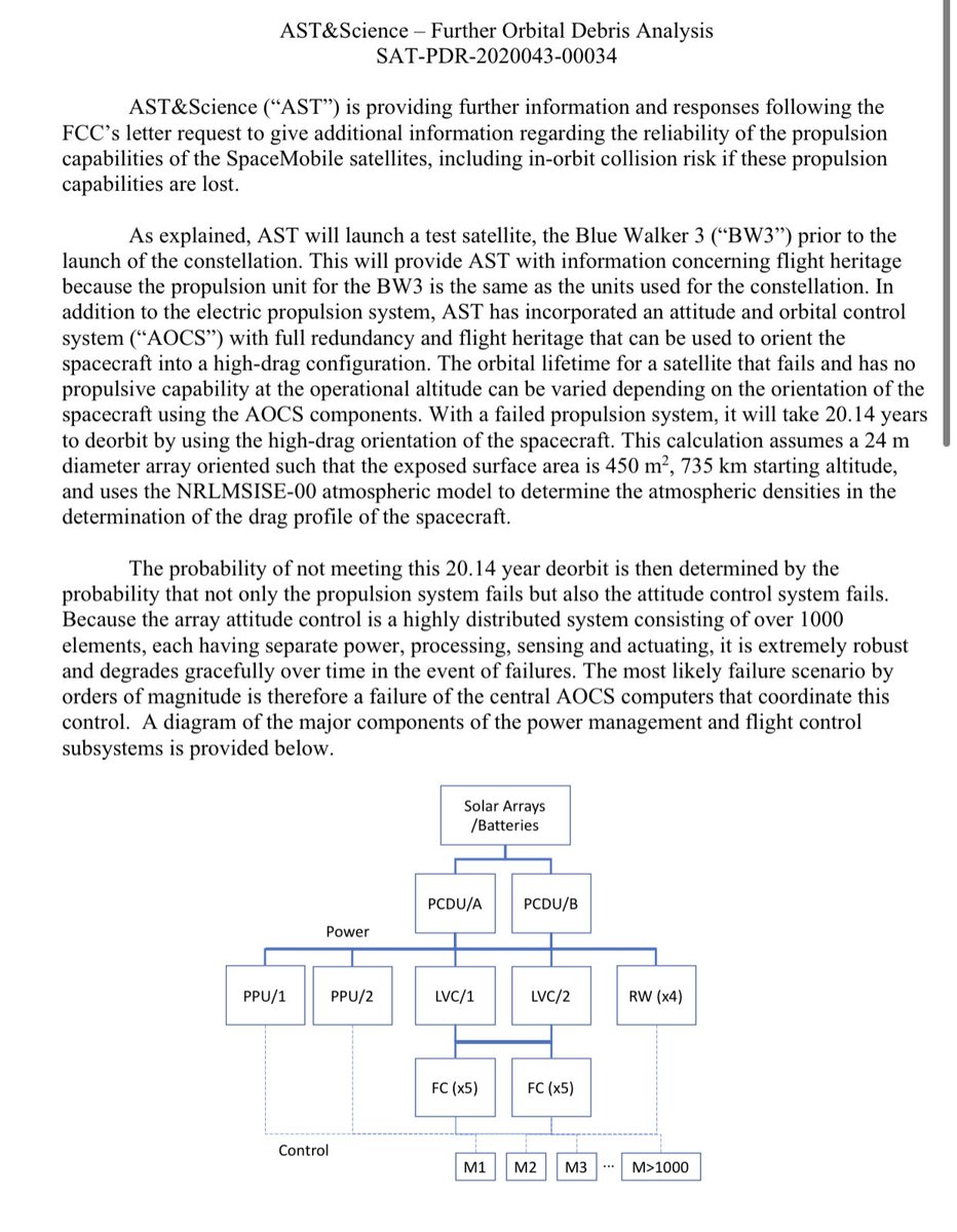 AST formfactor is unique in presenting a very thin section perpendicular to direction of travel and incoming debris. Less than one sqm per satellite. Affecting its ballistic coefficient.