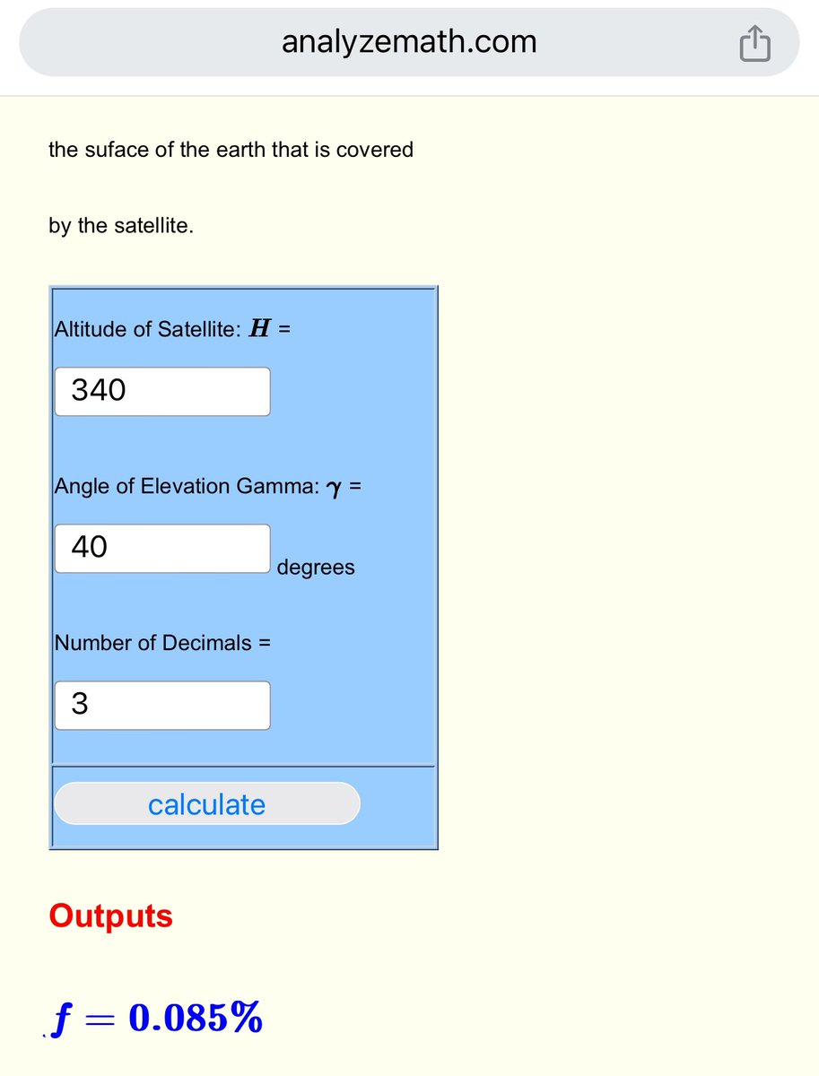 Being kind and allowing a 35 degree elevation angle cutoff for Starlink creates a footprint that is 0.119% of earths surface.