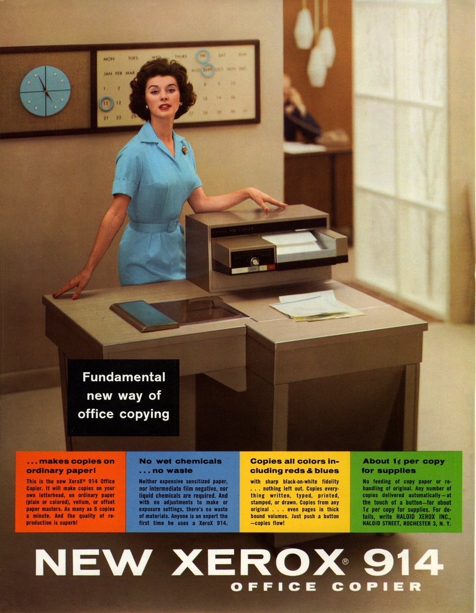 And by 1963 every modern office had a copier. Sadly they looked like the toast machine you get in hotels, so they mostly copied bread.