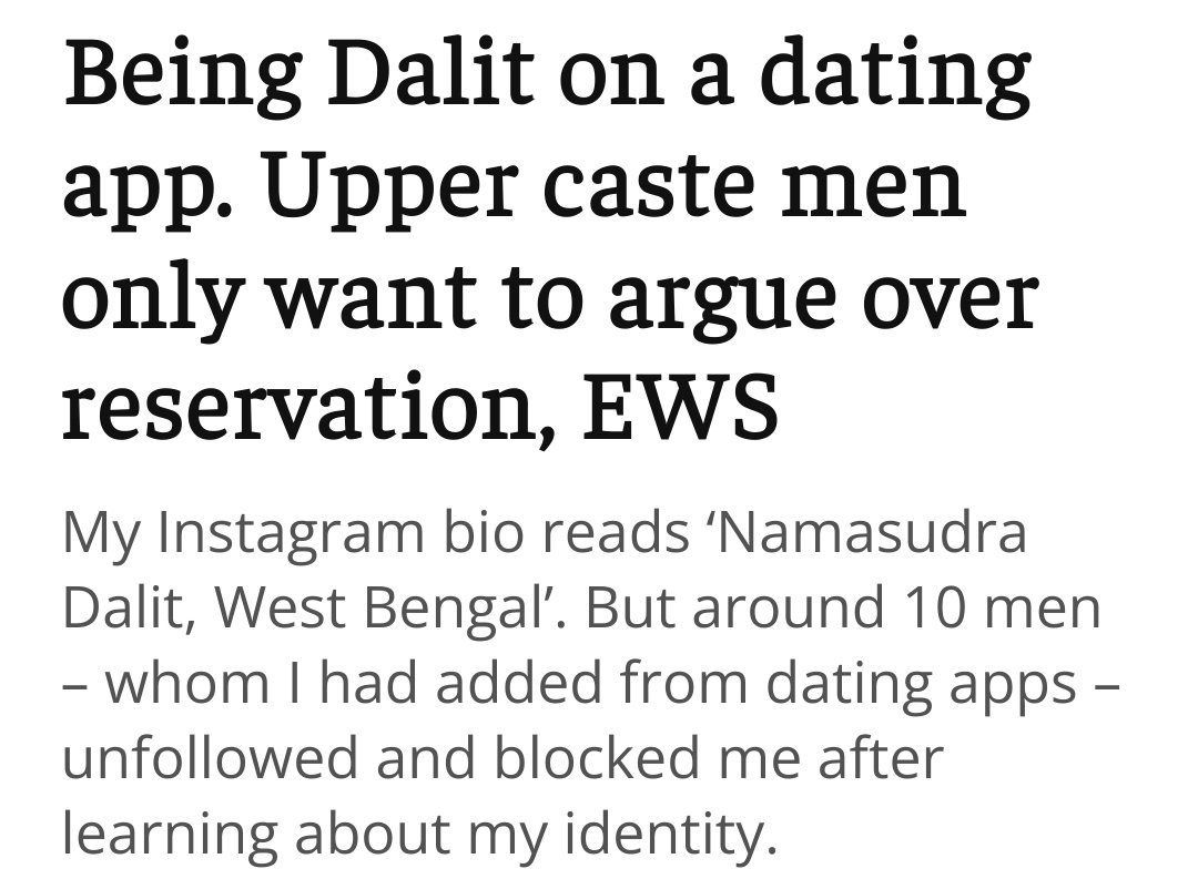 Meet my partner, 𝗠𝗮𝗻𝗶𝘀𝗵𝗮 𝗠𝗼𝗻𝗱𝗮𝗹, a 28 y/o bengali journalist who wants reservation for daIits on dating apps
