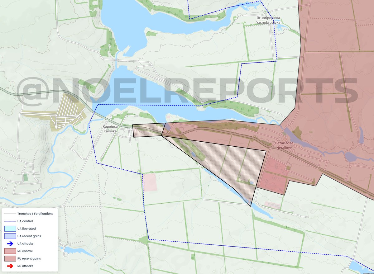 While Russians are pushing hard for quite a while now, the front line east of the city is barely moving. Russians did make some small gains in the eastern microdistrict. The situation in Kalynivka is unclear, but looks Ukrainian held after a recent counterattack.