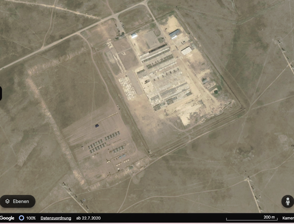 Before 2019 this base was a small abandoned military site with a few ruined buildings, surrounded by a wind farm of all things. In 2019 work started to turn the facility into a staging point for military equipment.