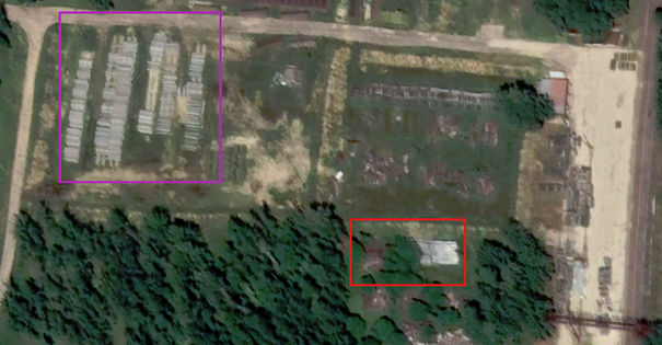 Another 🧵. This time let's take a look at an Rocket and Artillery Warehouse near the town of Sazan'e. Big thanks to @HighMarsed, @Ath3neN0ctu4 and especially @Jonpy99 for helping me with identifying the vehicles there.