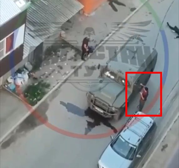 You can see how the security forces on the street approach the side doors and communicate with gestures to their colleagues inside. You can also see bullet marks on the windshield of the armored car.