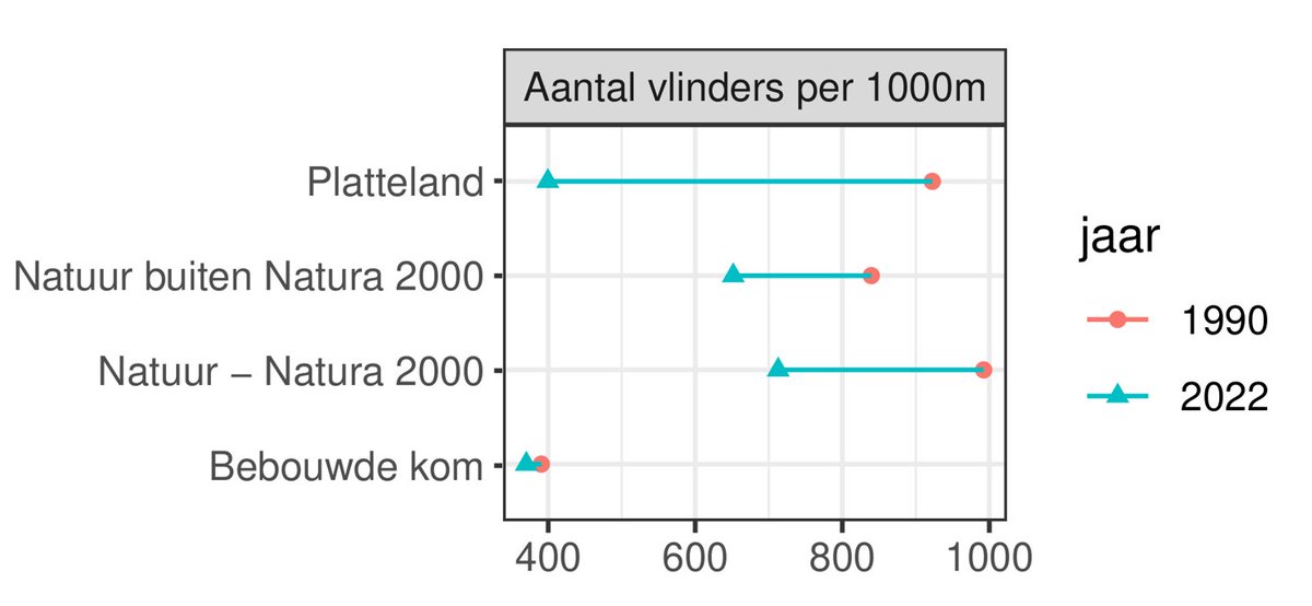 Het grootste deel van NL is platteland, dus daar hebben we de meeste vlinders verloren. Stifstofdepositie is zeker een van de oorzaken, maar een recent artikel wijst ook gif aan als een van de drijvende krachten (). /15journals.plos.org/plosone/articl…