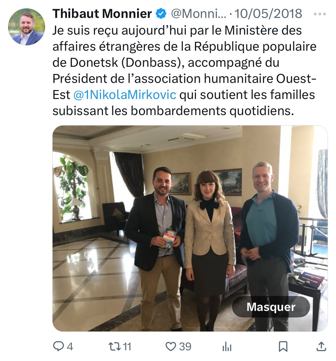 En 2018, il effectue une visite amicale dans le Donbass, territoire ukrainien annexé par la Russie en violation du droit international. [4/15]