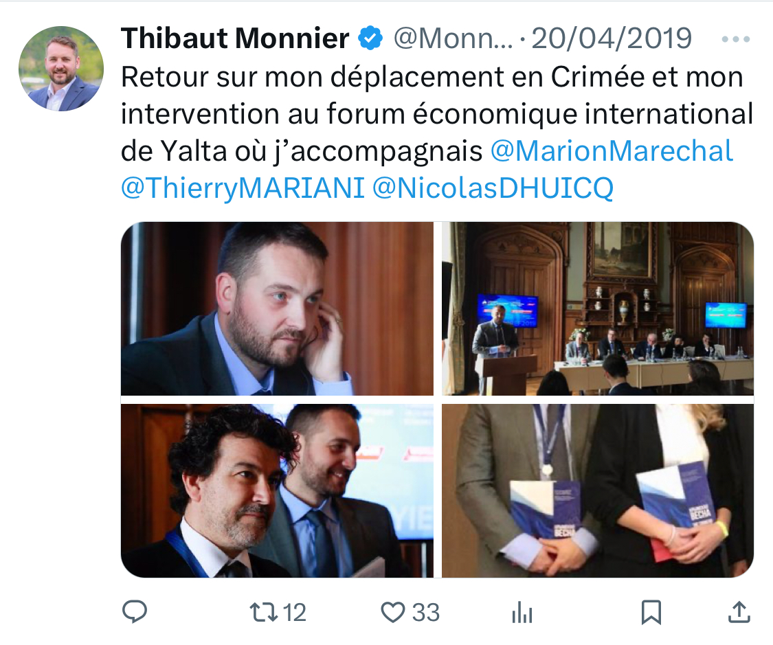 En 2019 il se rend en Crimée, un autre territoire contesté et revendiqué la Russie pour participer à un événement pro-Poutine. [6/15]