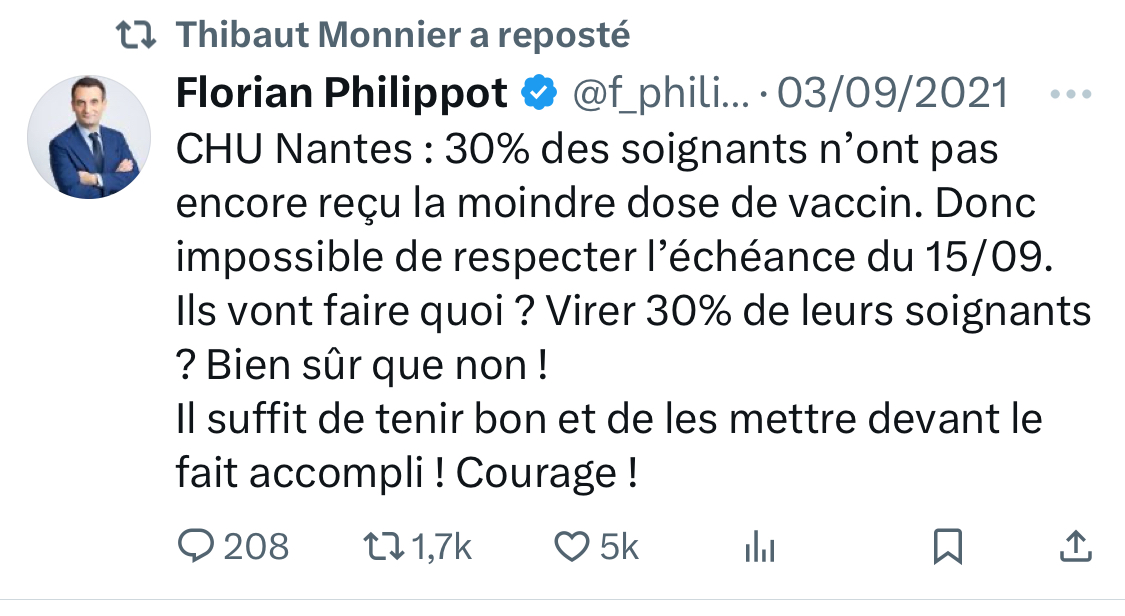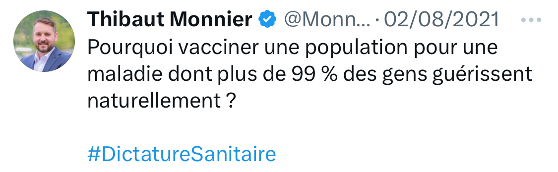 Il assume même publiquement des positions clairement antivax. [12/15]