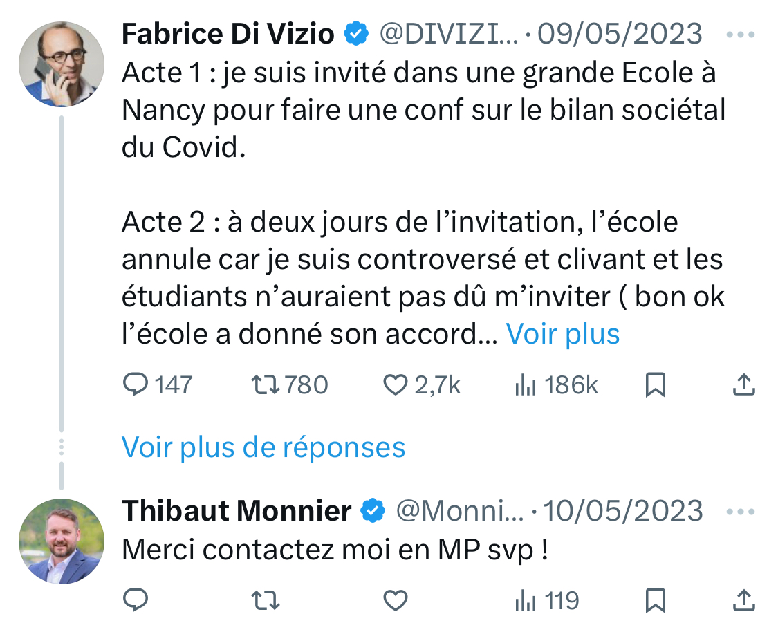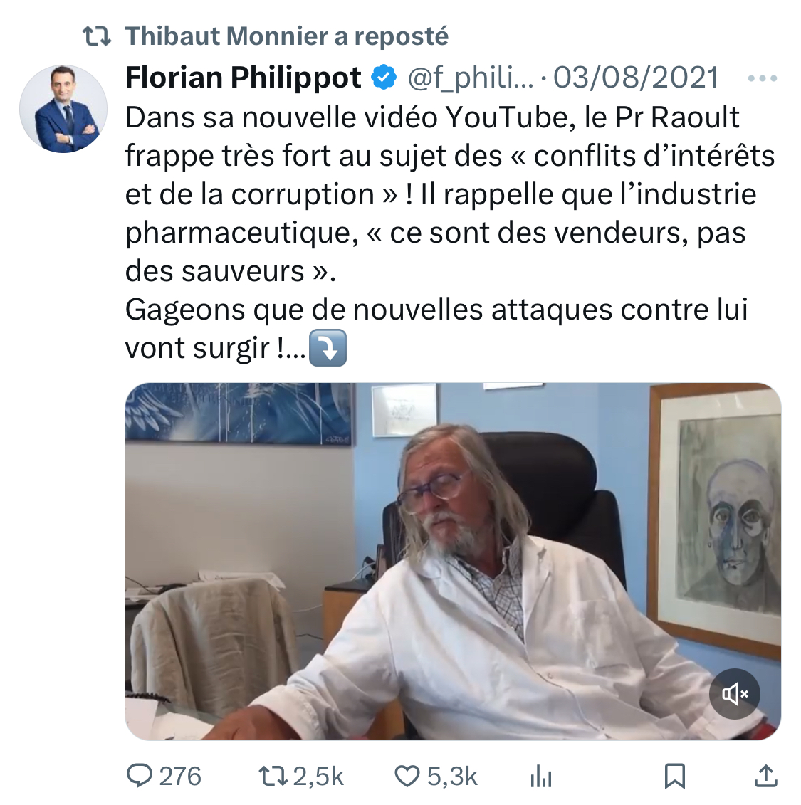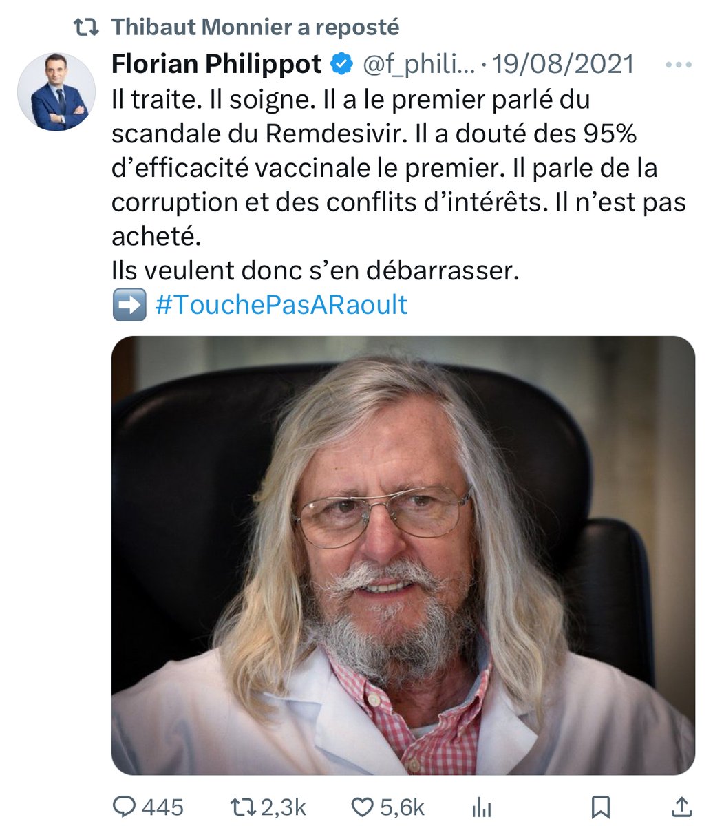 Pendant et après la crise sanitaire, il a partagé un nombre faramineux de tweets diffusant de la désinformation médicale : Di Vizio, Raoult, Philippot… [11/15]