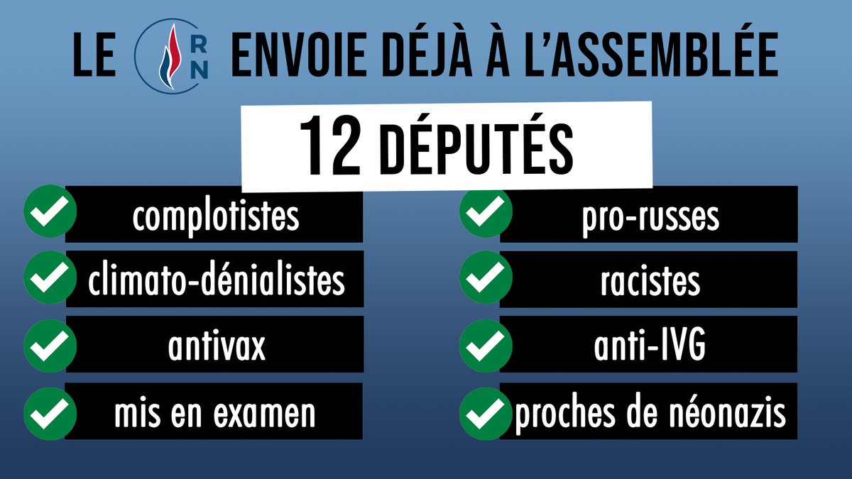 🔥 39 candidats RN ont été élus dès le premier tour. Nous savons d'ores et déjà que l'Assemblée Nationale comportera donc son lot de députés pro-russes, complotistes, antivax, mis en examen, anti-IVG, proches de néo-nazis... 🔎 Zoom sur 12 d'entre-eux dans ce fil à RT ⬇️