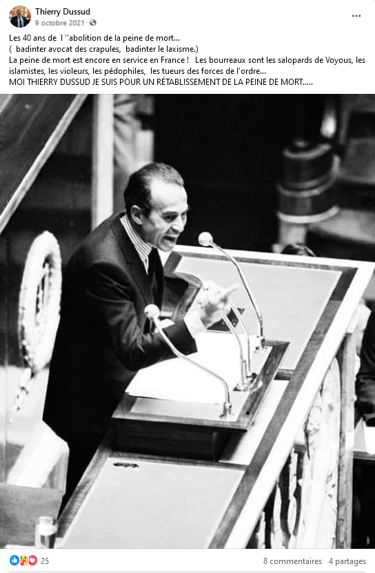 Thierry Dussud publie d'ailleurs tous les ans un post vengeur à l'encontre de Robert Badinter. [3/14]