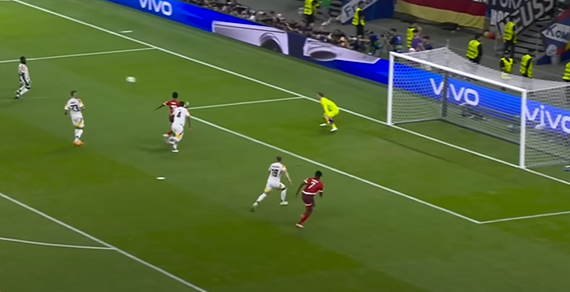 Also selbst wenn #Neuer vom 5er startet & aggressiv durchläuft kommt es mindestens zu einer 50/50-Szene. #Vinicius kommt ca. 13m vor dem Tor zum Abschluss. Da wäre er nicht wie gegen Ungarn zu spät gewesen denke ich. ().