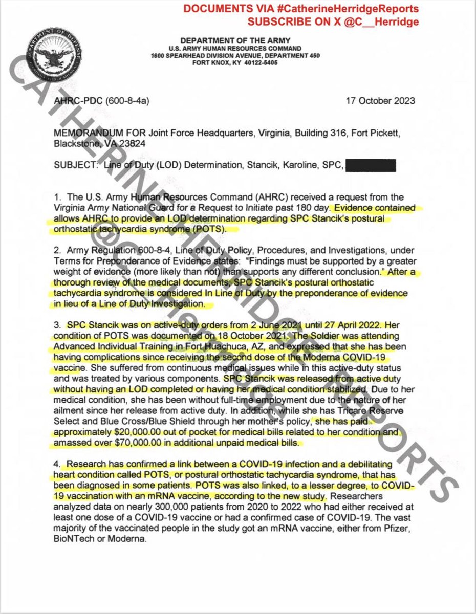 With the permission of @stancikkaroline and her advocacy group @REALUSJAG, we are exclusively publishing the Army Human Resources Command memo with redactions.