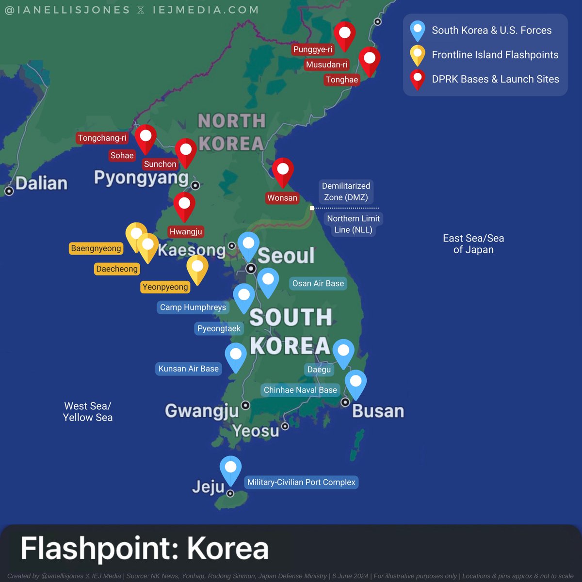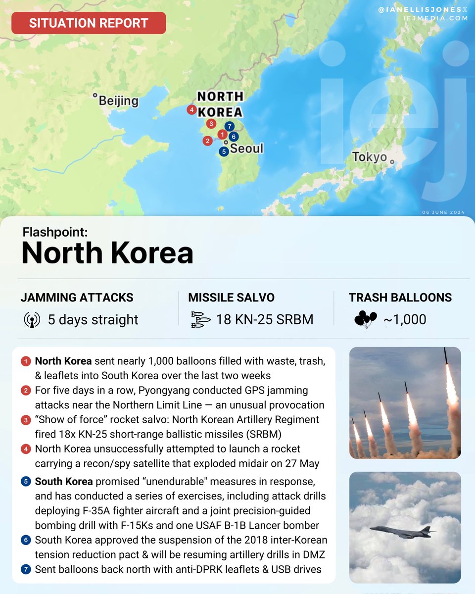 North Korea staged GPS jamming attacks in the waters near South Korea's northwestern border islands for 5 straight days from ~29 May to 2 June.
